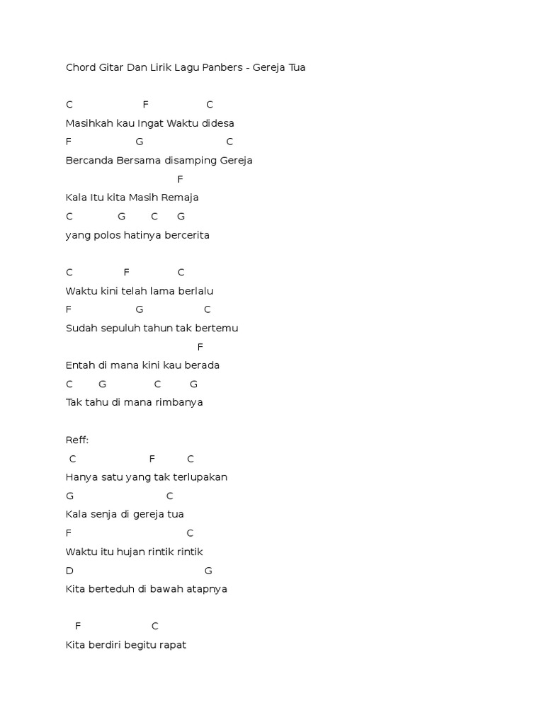 Gereja tua chords by panbers. Lirik dan chord lagu tembang kenangan apk app free. When you use a browser like chrome it saves some information from websites in its cache and cookies. You can download them free. Try to play on the fingertips as much as possible to avoid muting the other strings, to get a clear sound.